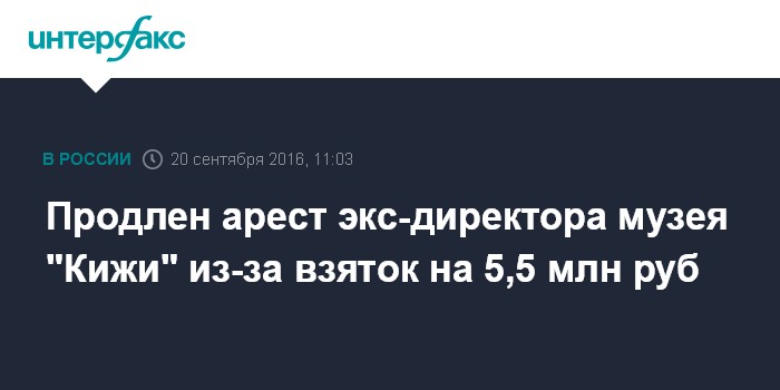 Продлен арест экс-директора музея "Кижи" из-за взяток на 5,5 млн руб