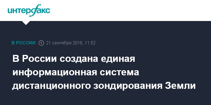 Москва. 21 сентября. INTERFAX.RU - Единая территориально-распределенная информационная система дистанционного зондирования Земли (ЕТРИС ДЗЗ) прошла государственные испытания, сообщает пресс-служба АО "Российские космические системы" (РКС).