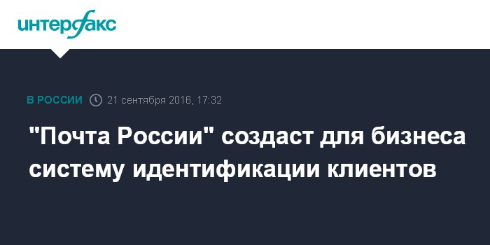 Москва. 21 сентября. INTERFAX.RU - ФГУП "Почта России" создает систему идентификации пользователей для интернет-магазинов и финансового сектора, сообщил замгендиректора "Почты России" Родион Шишков.