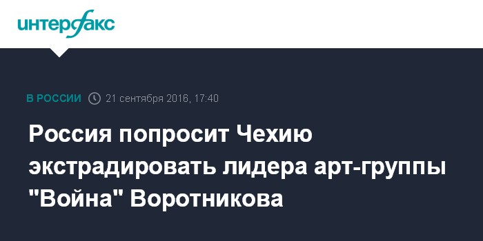 Россия попросит Чехию экстрадировать лидера арт-группы "Война" Воротникова