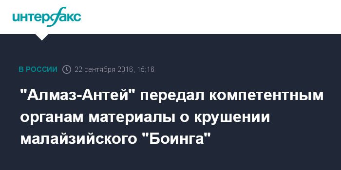 "Алмаз-Антей" передал компетентным органам материалы о крушении малайзийского "Боинга"