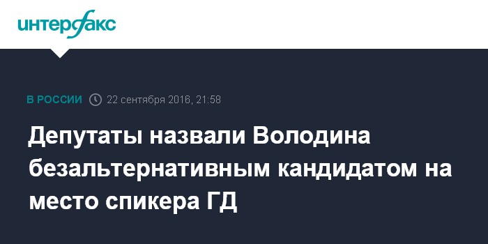 "Вариант, по-моему, теперь один - Володин", - сказал, в частности, "Интерфаксу" в четверг вице-спикер Госдумы шестого созыва, глава Высшего совета ЛДПР Игорь Лебедев после того, как стало известно, что президент предложил нынешнему спикеру Сергею Нарышкину должность главы СВР. С ним согласен первый заместитель руководителя фракции эсеров Михаил Емельянов.