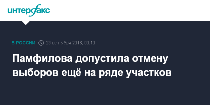 Москва. 23 сентября. INTERFAX.RU - Глава ЦИК считает, что в ближайшее время еще на ряде избирательных участков могут быть отменены итоги выборов.