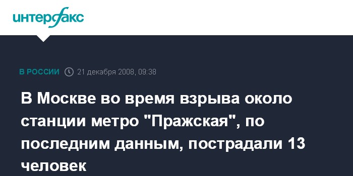 В Москве во время взрыва около станции метро "Пражская", по последним данным, пострадали 13 человек