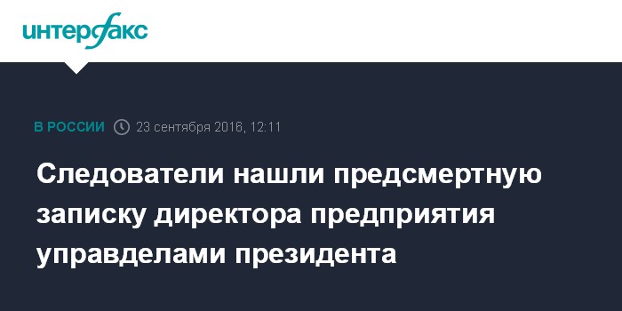 Следователи нашли предсмертную записку директора предприятия управделами президента
