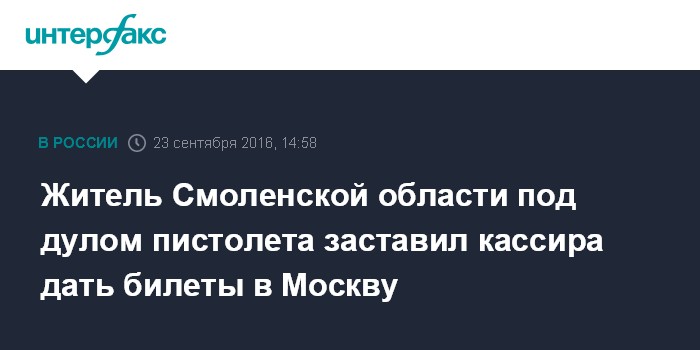 Житель Смоленской области под дулом пистолета заставил кассира дать билеты в Москву