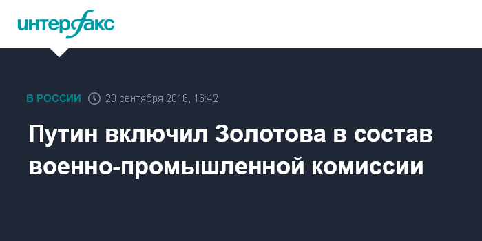 Москва. 23 сентября. INTERFAX.RU - Директор Росгвардии Виктор Золотов включен в состав военно-промышленной комиссии РФ.