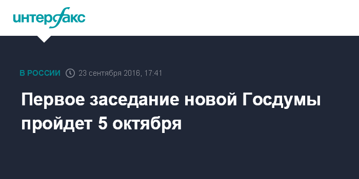 "Созвать первое заседание Государственной Думы Федерального Собрания Российской Федерации седьмого созыва 5 октября 2016 г. в 12 часов", - говорится в тексте указа, который вступает в силу со дня его официального опубликования.
