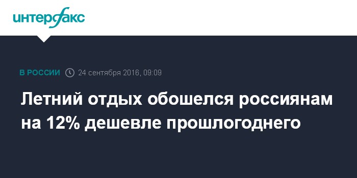 Москва. 24 сентября. INTERFAX.RU - Средняя сумма, которую потратили в этом году на летний отдых россияне, на 12% ниже, чем год назад, но превышает заранее запланированные расходы, сообщил гендиректор ВЦИОМ Валерий Федоров.