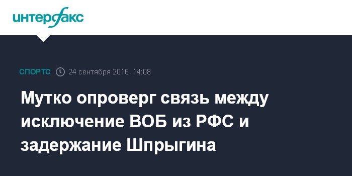 Мутко опроверг связь между исключение ВОБ из РФС и задержание Шпрыгина