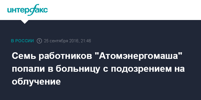 Семь работников "Атомэнергомаша" попали в больницу с подозрением на облучение