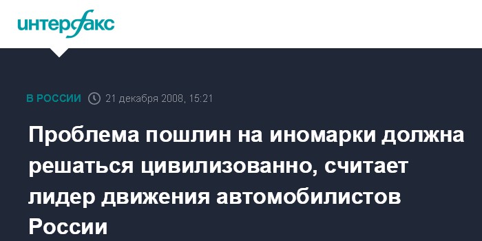 Проблема пошлин на иномарки должна решаться цивилизованно, считает лидер движения автомобилистов России