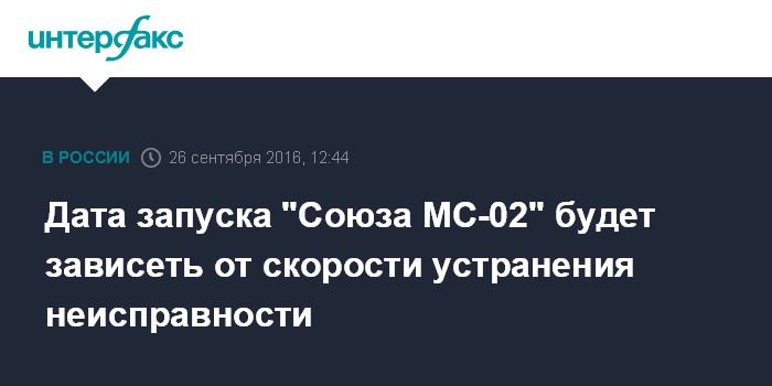 Москва. 26 сентября. INTERFAX.RU - Своевременное устранение технической неисправности, спровоцировавшей перенос запуска "Союз МС-02", позволит избежать значительного смещения графика запусков и посадок, запланированных в 2016 году, сообщил в понедельник "Интерфаксу" источник в ракетно-космической отрасли.