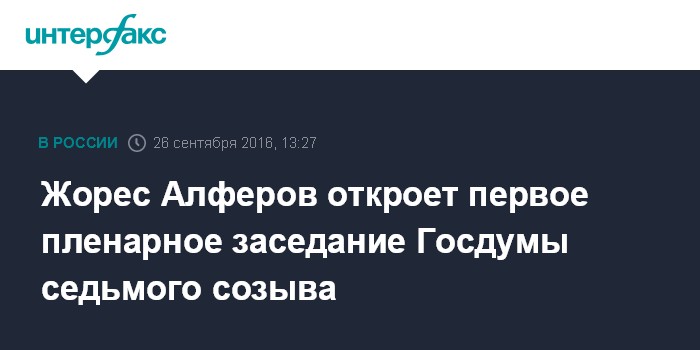 Москва. 26 сентября. INTERFAX.RU - Первое пленарное заседание Госдумы седьмого созыва, как ожидается, откроет депутат от КПРФ Жорес Алферов, сообщили "Интерфаксу" в комиссии по организации работы нижней палаты.