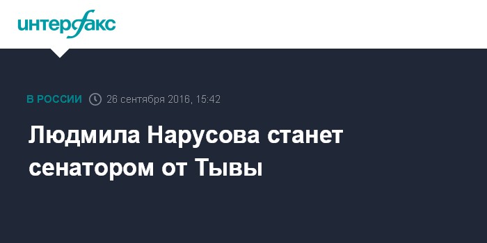 Москва. 26 сентября. INTERFAX.RU - Глава республики Тыва Шолбан Кара-оол назначил сенатором от региона Людмилу Нарусову, сообщается на сайте правительства республики в понедельник.