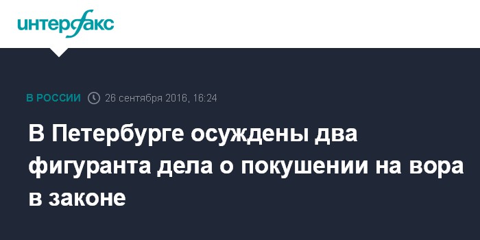 Москва. 26 сентября. INTERFAX.RU - Московский суд Петербурга вынес приговор двум потенциальным исполнителям покушения на известного "вора в законе".