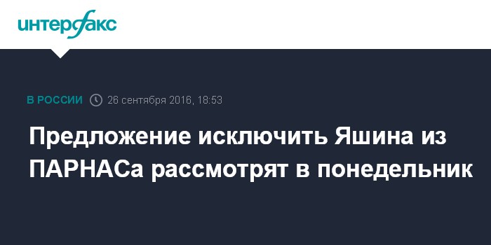 Предложение исключить Яшина из ПАРНАСа рассмотрят в понедельник