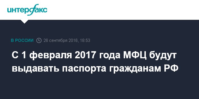С 1 февраля 2017 года МФЦ будут выдавать паспорта гражданам РФ