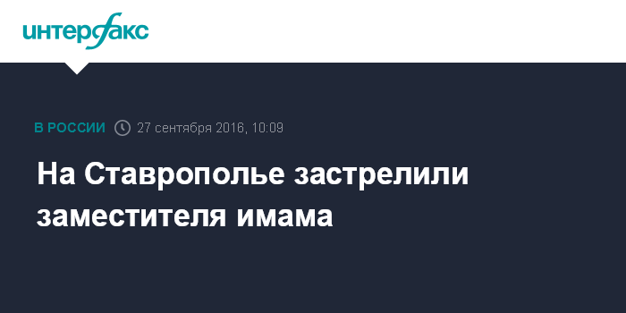 Москва. 27 сентября. INTERFAX.RU - Заместитель имама Нефтекумского района Ставропольского края найден убитым на дороге, сообщил во вторник "Интерфаксу" источник в силовых структурах региона.