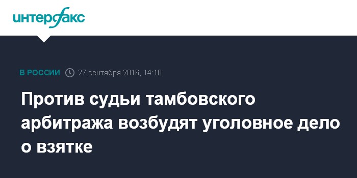 Против судьи тамбовского арбитража возбудят уголовное дело о взятке