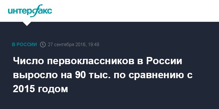 По его данным, число первоклассников в 2016-2017 учебном году составило 1 млн 741 тыс. человек, при этом в 2015-2016 учебном году их было более 1,65 млн. Таким образом, в первые классы в этом году по всей России пошло почти на 90 тыс. больше, что составляет лишь порядка 5%. В прошлом году рост составил около 9% - тогда в первые классы пошло на 145 тыс. детей больше, чем в 2014 г.