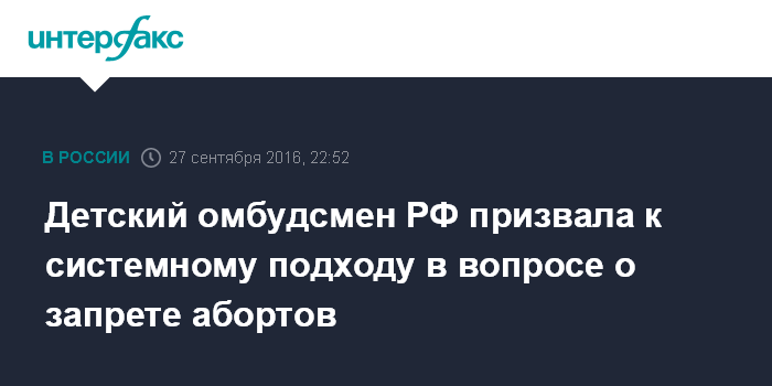Детский омбудсмен РФ призвала к системному подходу в вопросе о запрете абортов