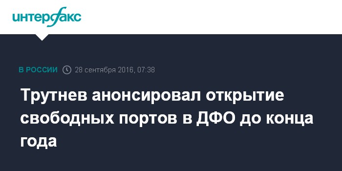 Москва. 28 сентября. INTERFAX.RU - Свободные порты на Сахалине, Камчатке, в Хабаровском крае должны начать работу до конца года, сказал в среду вице-премьер - полпред президента в Дальневосточном федеральном округе Юрий Трутнев журналистам во Владивостоке.