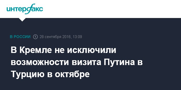 Москва. 28 сентября. INTERFAX.RU - Пресс-секретарь президента РФ Дмитрий Песков не исключил возможности того, что глава российского государства Владимир Путин приедет в Турцию с визитом в октябре этого года.