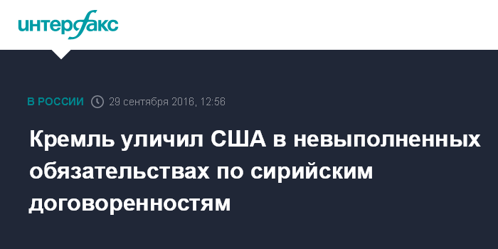 Кремль уличил США в невыполненных обязательствах по сирийским договоренностям