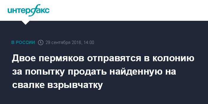 Москва. 29 сентября. INTERFAX.RU - Дзержинский районный суд Перми вынес приговор двум местным жителям, обвинявшимся в попытке продать тротиловые шашки и гранаты, сообщается на сайте ГУ МВД по Пермскому краю в четверг.