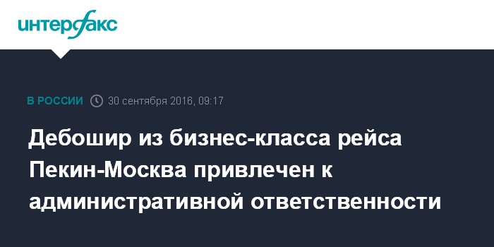 Москва. 30 сентября. INTERFAX.RU - Пассажир авиарейса "Пекин-Москва", из-за неадекватного поведения которого экипаж в пятницу был вынужден приземлиться в Красноярске, привлечен к ответственности.