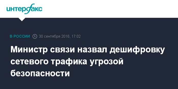 Министр связи назвал дешифровку сетевого трафика угрозой безопасности