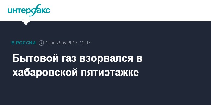 Москва. 3 октября. INTERFAX.RU - Взрыв бытового газа произошел в пятиэтажном доме в Хабаровске, сообщил "Интерфаксу" источник в экстренных службах региона.
