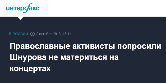 Москва. 3 октября. INTERFAX.RU - Общественная организация "Православный союз" призвала музыканта Сергея Шнурова воздержаться от мата и нецензурной брани во время выступлений в Ростове-на-Дону и в Краснодаре.