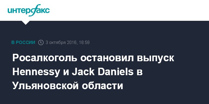 Росалкоголь остановил выпуск Hennessy и Jack Daniels в Ульяновской области