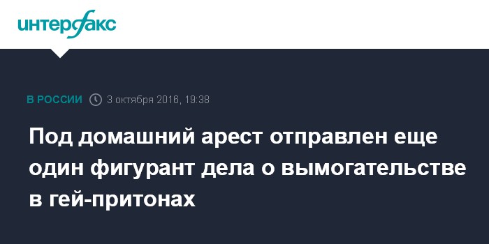 Под домашний арест отправлен еще один фигурант дела о вымогательстве в гей-притонах