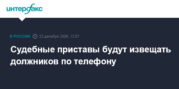 Москва. 22 декабря. INTERFAX.RU - Федеральная служба судебных приставов (ФССП) России с 2009 года намерена обзванивать должников по телефону, причем и в выходные, и праздничные дни.