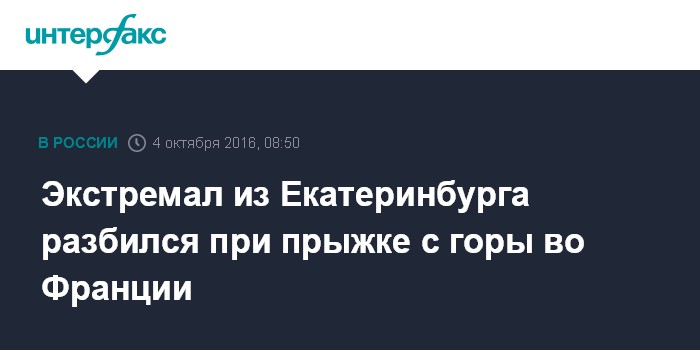 Москва. 4 октября. INTERFAX.RU - Парашют, не раскрывшийся вовремя, стал причиной гибели екатеринбургского спортсмена, прыгнувшего со специальной экипировкой с вершины Эгюий-дю-Миди (3,8 тысячи метров) во французских Альпах.