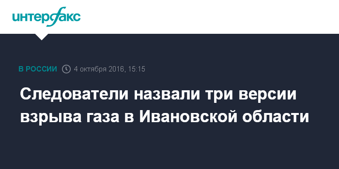 Москва. 4 октября. INTERFAX.RU - Следователи отрабатывают три версии причин взрыва бытового газа в поселке Ильинское-Хованское Ивановской области, который произошел во вторник утром, сообщила "Интерфаксу" пресс-секретарь СУ СКР по региону Ольга Долева.