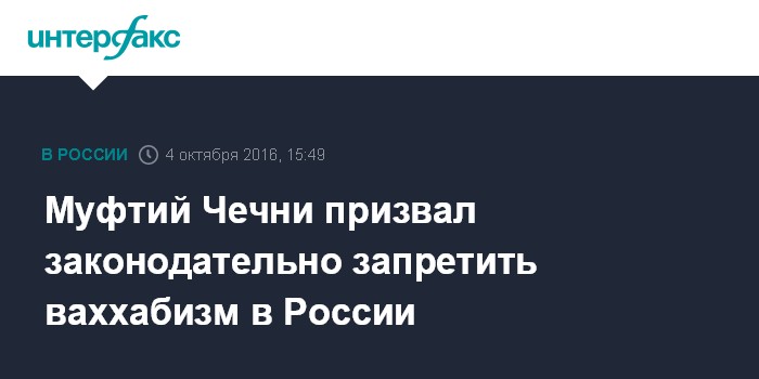 Москва. 4 октября. INTERFAX.RU - Муфтий Чечни Салах Межиев считает, что ваххабизм нужно объявить в России вне закона.