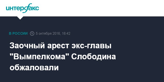 Заочный арест экс-главы "Вымпелкома" Слободина обжаловали