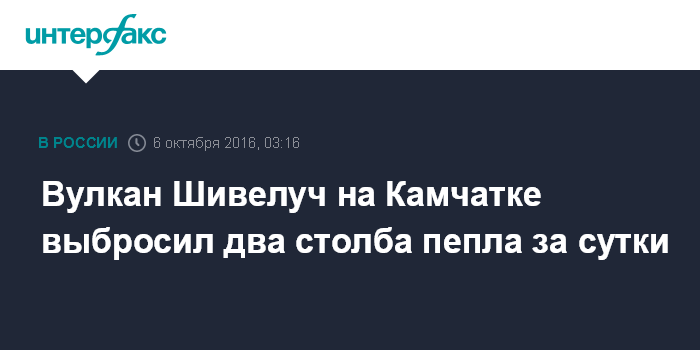 Москва. 6 октября. INTERFAX.RU - Вулкан Шивелуч, извергающийся на Камчатке, выбросил столб пепла на высоту 4500 м над уровнем моря, сообщает в четверг ГУ МЧС России по Камчатскому краю.