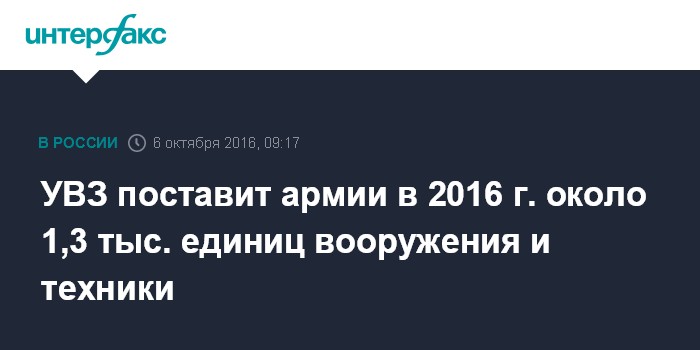 "В 2016 году в интересах Министерства обороны РФ будет поставлено около 1,3 тысяч различного вооружения и техники, более половины из них - современные образцы", - сообщил в четверг сайт "УВЗ".