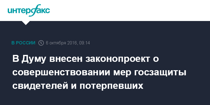 В Думу внесен законопроект о совершенствовании мер госзащиты свидетелей и потерпевших