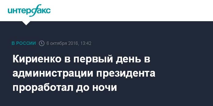 "Кириенко к работе приступил еще вчера, уже работает. Вчера собственно до ночи", - сказал Песков журналистам, отвечая на вопрос "Интерфакса".