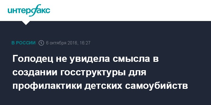 Голодец не увидела смысла в создании госструктуры для профилактики детских самоубийств