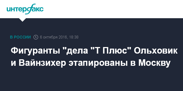 Фигуранты "дела "Т Плюс" Ольховик и Вайнзихер этапированы в Москву