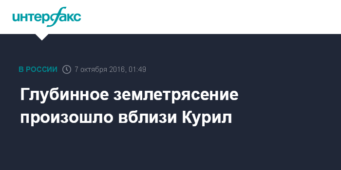 Москва. 7 октября. INTERFAX.RU - Землетрясение магнитудой 3,8 зарегистрировано в четверг вечером в Тихом океане возле Курильских островов Сахалинской области, сообщает пресс-служба ГУ МЧС региона со ссылкой на Геофизическую службу РАН.