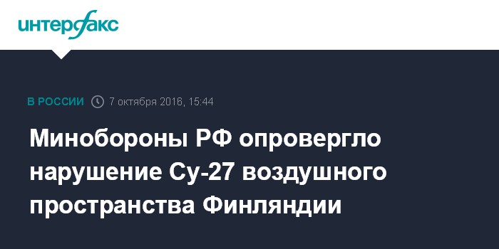 Минобороны РФ опровергло нарушение Су-27 воздушного пространства Финляндии