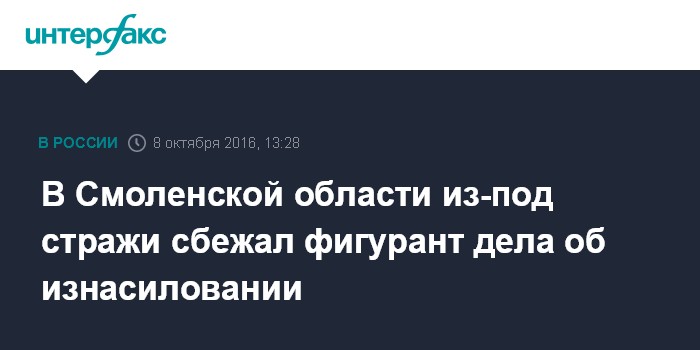 В Смоленской области из-под стражи сбежал фигурант дела об изнасиловании